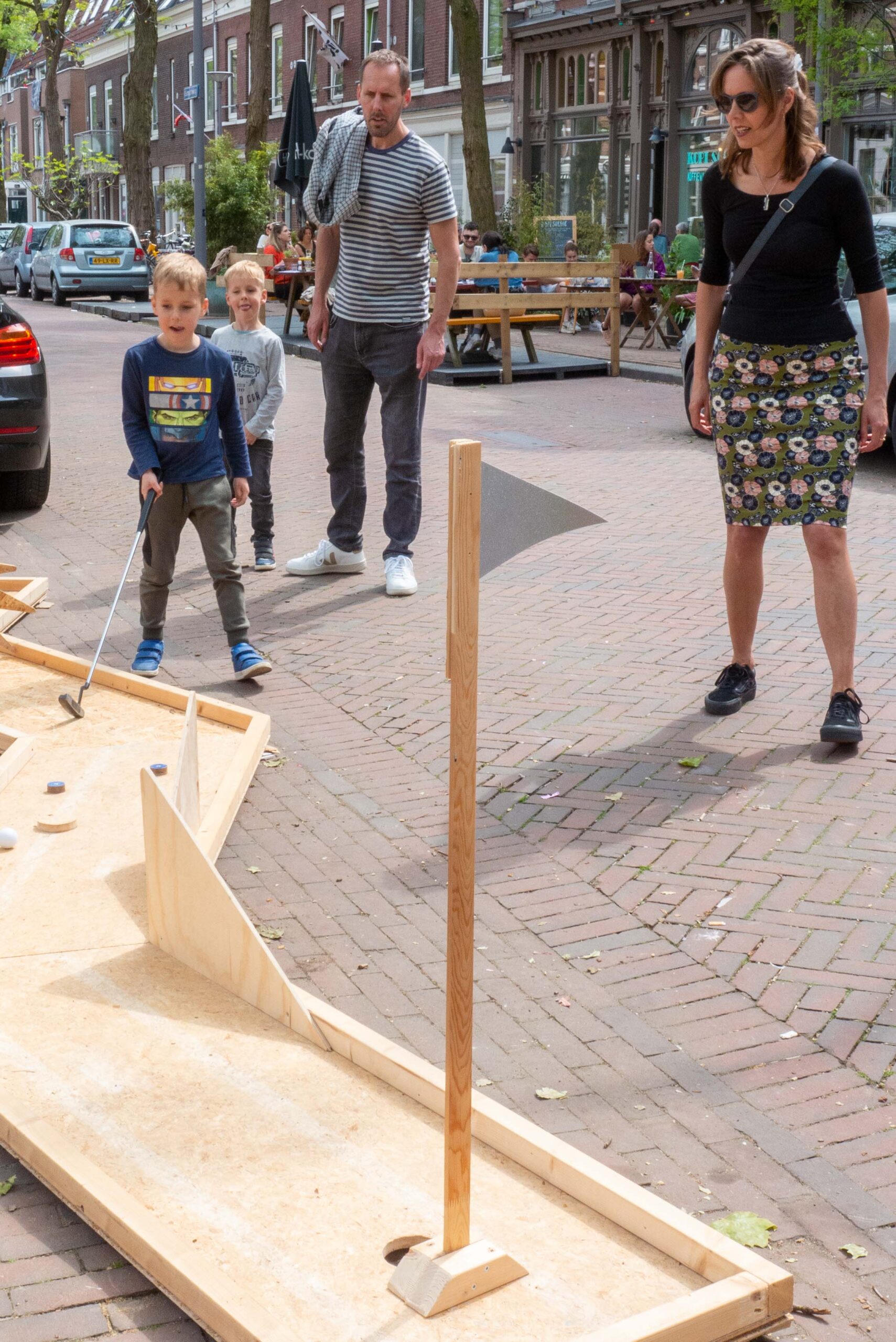Wij organiseerden een workshop waar bezoekers gevraagd werden mee te ontwerpen aan een nieuwe invulling voor al die loze parkeervakken. De ontwerpen konden vervolgens met kratten op ware schaal worden uitgetest op een echt parkeervak.